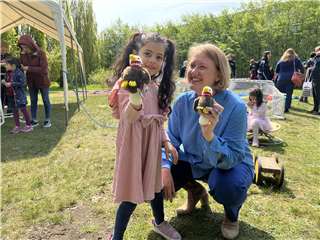 Überraschung für die Kids: Bundesfamilienministerin überreichte jedem Kind ein Plüschtier.